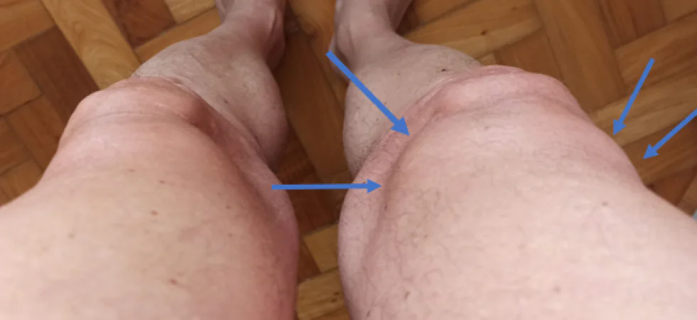 O resultado é um inchaço no joelho – daí surge o nome “água no joelho”. O acúmulo do líquido é tamanho que é possível notá-lo facilmente.